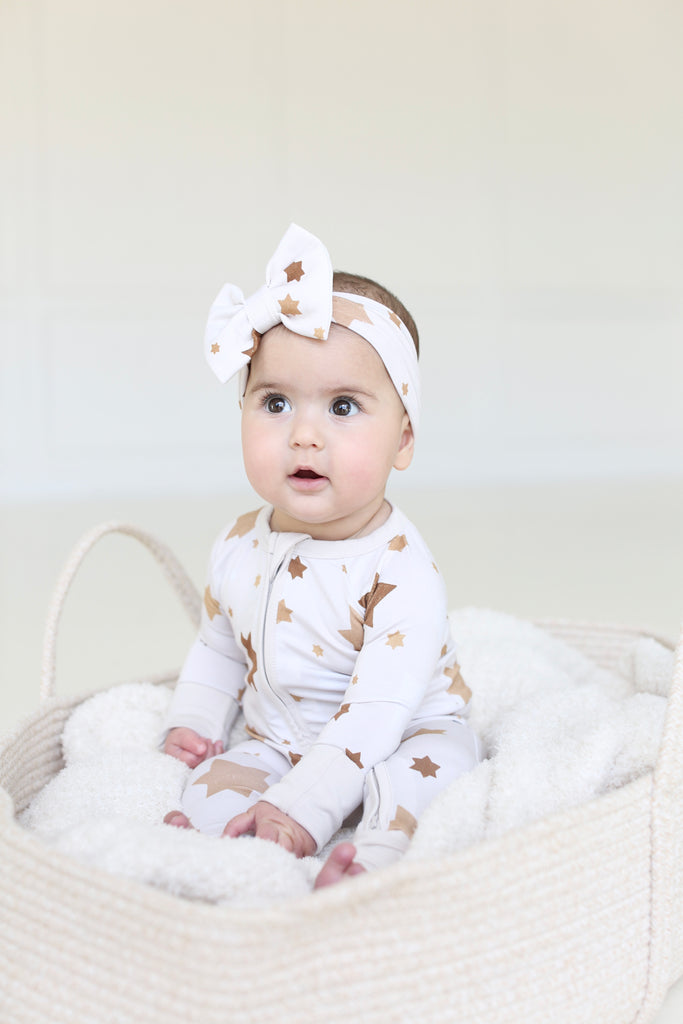 Soft, timeless, and made to shine in the glow of menorah light. Our Golden Hour bow pairs perfectly with the matching pajamas — featuring delicate neutral tones and subtle Stars of David for an elegant Hanukkah touch. Designed to add a gentle Jewish accent to any neutral outfit all year long, this bow is the sweetest finishing piece for little ones celebrating in style and comfort.