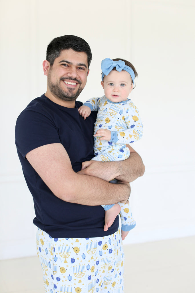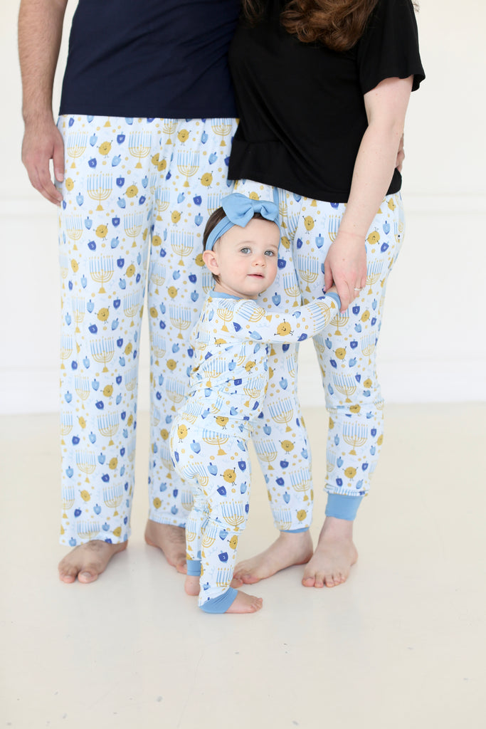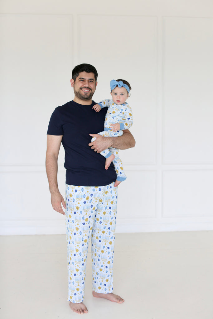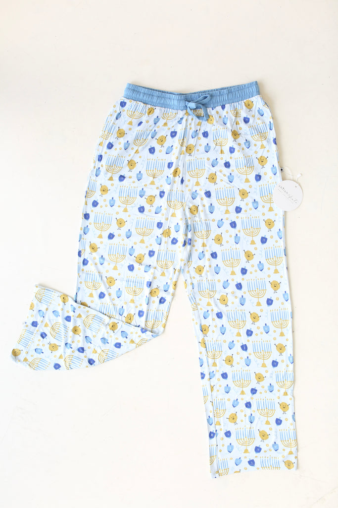 Celebrate the season in cozy style with our Latkes & Light Men's Pajama Pants—designed for festive comfort and joyful moments. Featuring a playful Hanukkah print full of dreidels, menorahs, and your favorite treats, these ultra-soft pants are perfect for lighting candles, spinning the dreidel, and snuggling up with family.