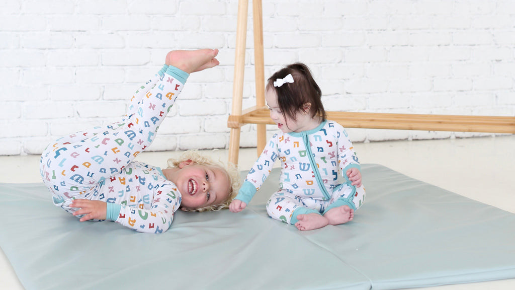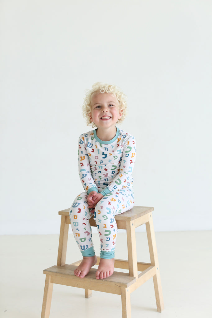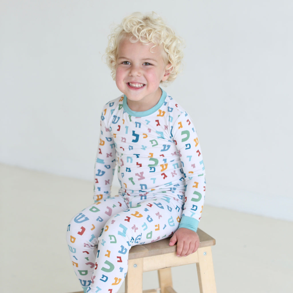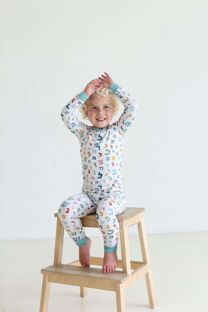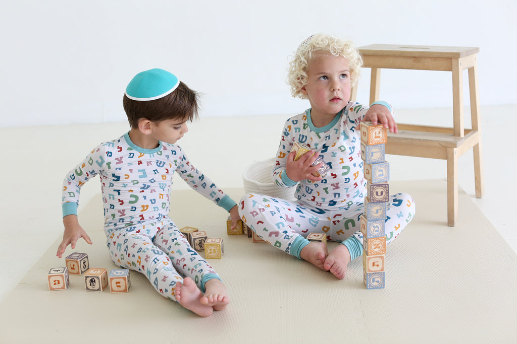 Our Aleph Bet toddler pajama features a vibrant mix of colorful Hebrew letters, bringing the beauty of the aleph-bet to life. The bold, playful design makes learning and recognizing Hebrew letters part of the everyday routine. It’s a joyful way to connect with language, culture, and identity.