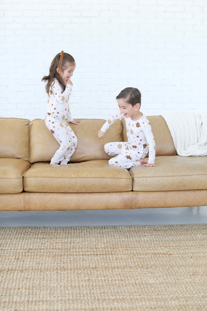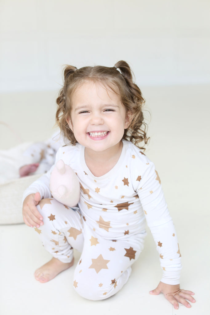 Our bamboo viscose fabric is Oeko-Tex® Standard 100 certified and the pajamas are designed to fit snugly in accordance with all CPSC safety regulations. We never use flame-retardant chemicals — because your child’s comfort and well-being come first. This garment is not flame resistant and should fit snugly for safety.