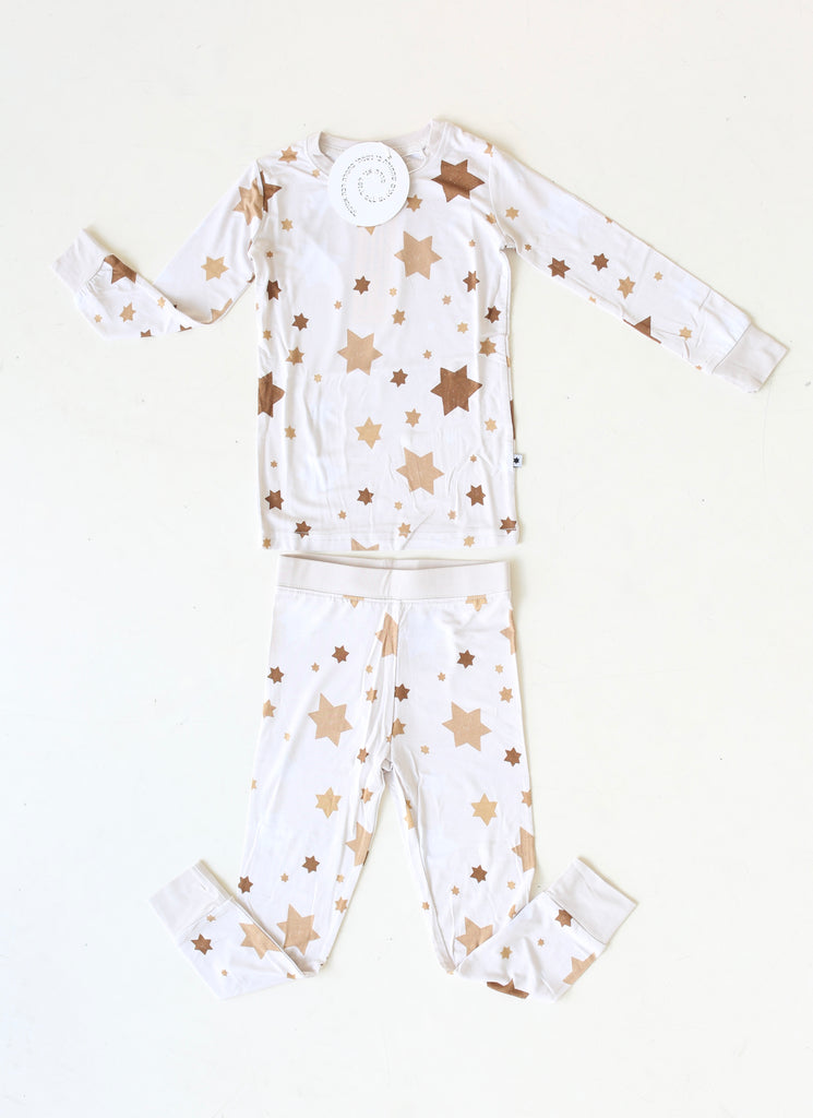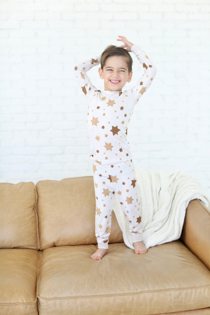 With a soft palette of creams, whites, and golden tans, this pajama set offers a subtle elegance that feels as special on a cozy winter night as it does on a quiet summer morning. The delicate star design adds a gentle sparkle, making it especially stunning by the glow of the menorah during Hanukkah, while still remaining versatile enough for year-round wear. Blending comfort, style, and understated beauty, it’s the perfect way to bring a touch of warmth and celebration to bedtime.